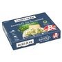 Produit à consommer après cuisson. ? Pour faciliter la manipulation des plaques de ravioles, si votre étui contient des barquettes, vous pouvez retirer les opercules et mettre les barquettes au congélateur pendant 10 minutes. ? Sinon, portez directement 2 litres d'eau à frémissement, avec un filet d'huile ou un cube de bouillon de volaille. ? Retirez les plaques de ravioles de leur papier, et plongez les entières dans l?eau. ? Remuez délicatement avec une écumoire afin de détacher les carrés. Ne laissez jamais bouillir les ravioles. ? Laissez frémir 1 minute seulement et ramassez les ravioles à la surface de l'eau à l?aide de l'écumoire. Les ravioles sont fragiles, ne les égouttez pas dans une passoire. ? Déposez-les immédiatement dans un plat chaud avec un filet d'huile d'olive ou de la crème fluide, ou directement dans les assiettes. Dégustez sans attendre!