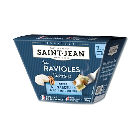 Ravioles cuisinées, sauce (33%) au Saint Marcellin et aux noix du Dauphiné