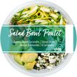 Ingrédients : Salade composée (92,9%) : Quinoa noir cuit 21,7% (eau, quinoa noir), aiguillettes de poulet traitées en salaison rôties 12,8% (aiguillettes de poulet 11,9%, eau, amidon de maïs, sel, dextrose), avocat 10%, quinoa rouge cuit 9,7% (eau, quinoa rouge), quinoa blanc cuit 9,5% (eau, quinoa blanc), courgette, lentilles corail cuites (lentilles corail, eau), carottes, AMANDES 2,8%, coriandre 1,7%, jeunes pousses d’épinard émincées, vinaigre de cidre, huile de colza, jus de citron vert, plantes aromatiques, sel. Sauce à l’huile d’avocat et au citron (7,1%) : Huile de colza, huile d’avocat 1,7%, MOUTARDE de Dijon (eau, graines de MOUTARDE, vinaigre d’alcool, sel), jus de citron concentré 0,2%, sel, herbes de Provence, poivre.