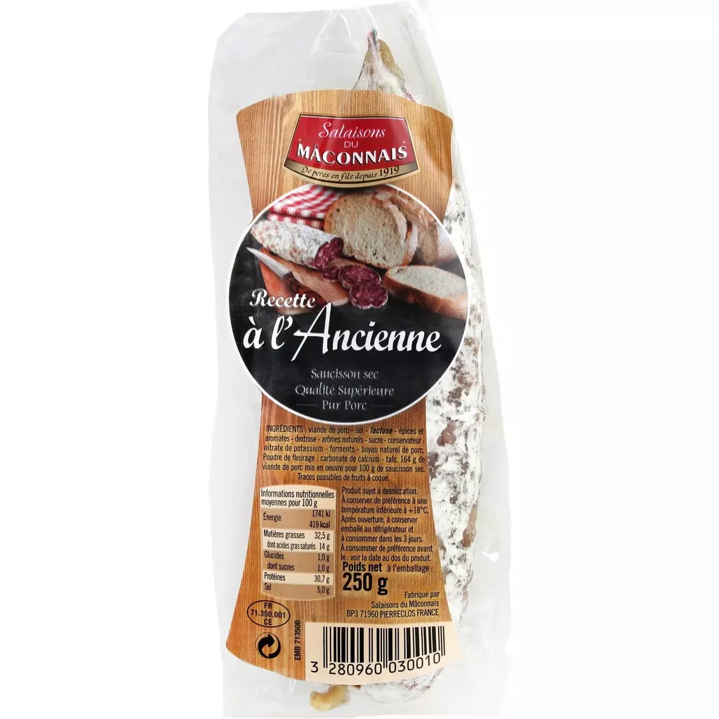 SAUCISSON SEC PUR PORC SUPERIEUR A L'ANCIENNE