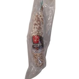 viande de porc (91%), noix (5%), sel, lactose, épices et plantes aromatiques, dextrose, saccharose, conservateur: E252, ferments, boyau naturel de porc