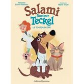 Court sur pattes, un peu cabot et sûr de lui, mais attentif, amical et investi... il est comme ça le docteur Salami ! Chez Barbara Chery, la vétérinaire, il y a Lucie son assistante, Edgard l'énorme maine coon et Salami le teckel. Aujourd'hui, il fête son anniversaire, et sa surprise est de taille ! Barbara lui offre une tenue de parfait vétérinaire : une blouse et un toutouscope... A présent, s'il vous plaît, on doit l'appeler docteur Teckel et il va accueillir de vrais patients !