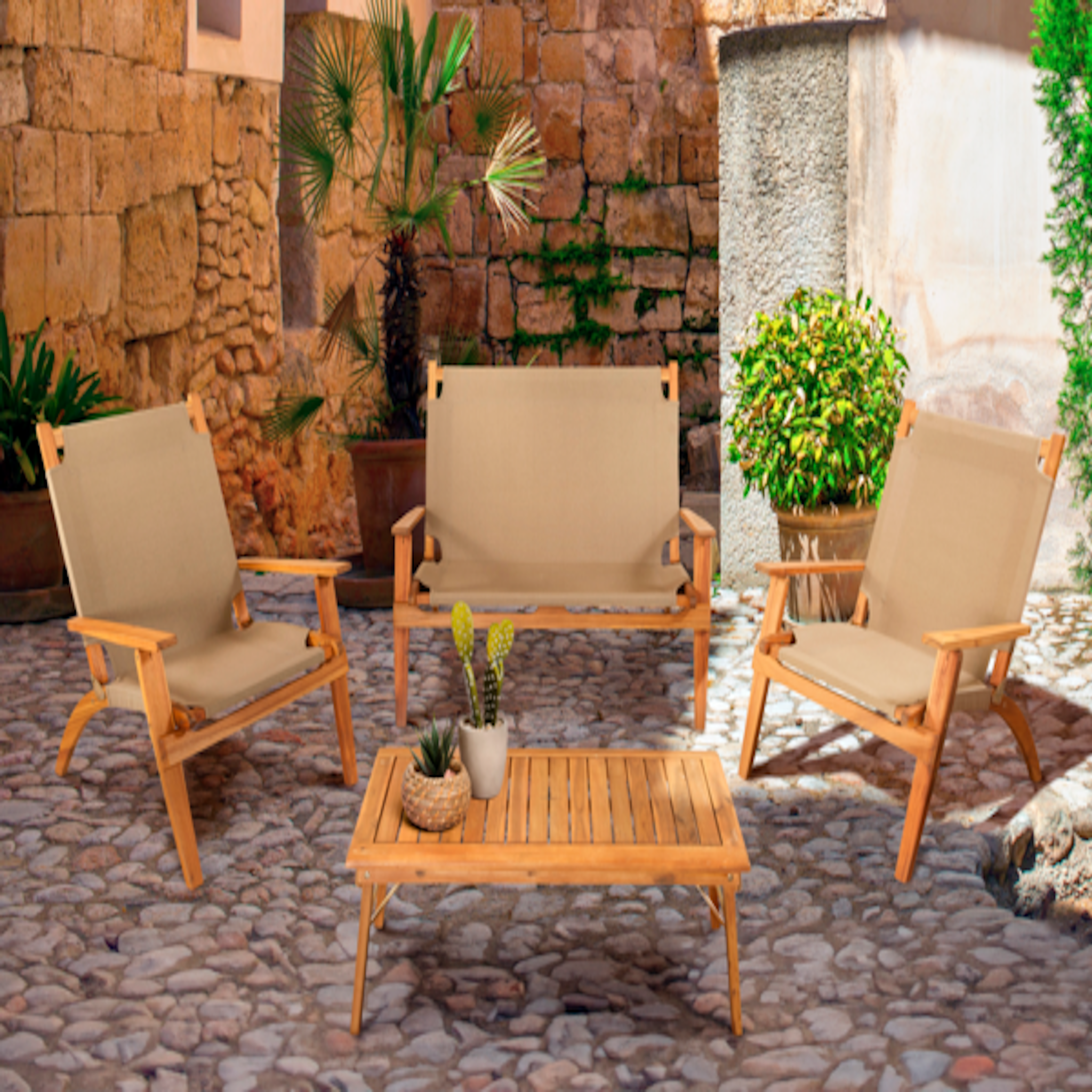 En savoir +Structure en acacia FSC huilé, assise et dossier en tissu 360g/m²