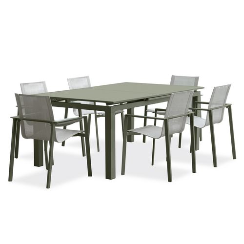 Salon de jardin - 6 places - Aluminium - Kaki - MIAMI