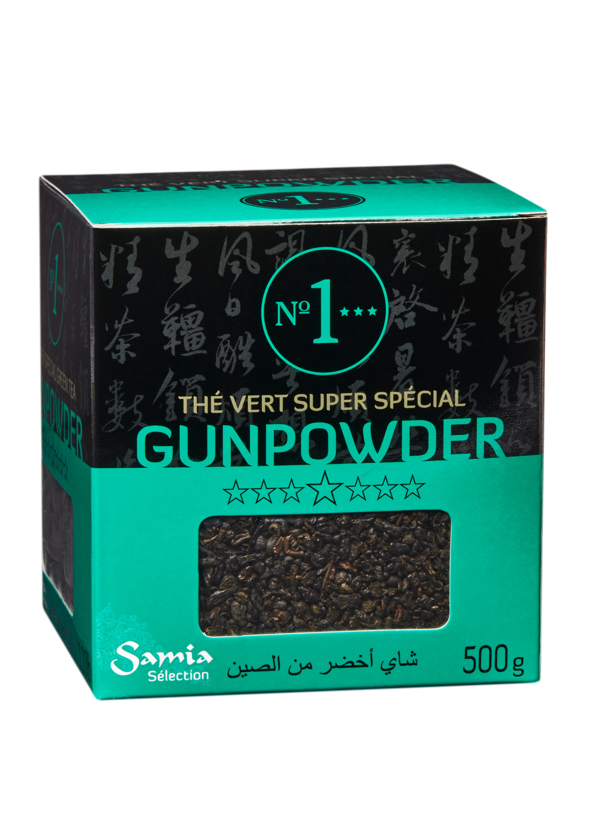 Le thé Gunpowder – poudre à canon, en anglais – est utilisé dans la préparation du fameux thé à la menthe. Originaire de la province du Zhejiang, il doit son nom à ses feuilles roulées en billes. Les Chinois l’appellent aussi « perles de thé ».