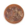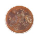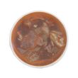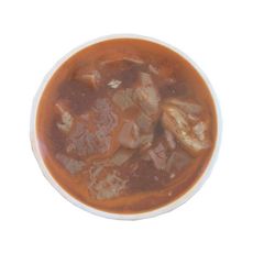 Panse de boeuf (53%) (Origine France), pieds de boeuf (16%), eau. Concentré de tomate (28%), oignons, lardons, piment de cayenne, ail, sel, épices, laurier, thym, romarin, gélatine alimentaire de porc (SULFITES). Acidifiant: E330. Conservateur: E202.
