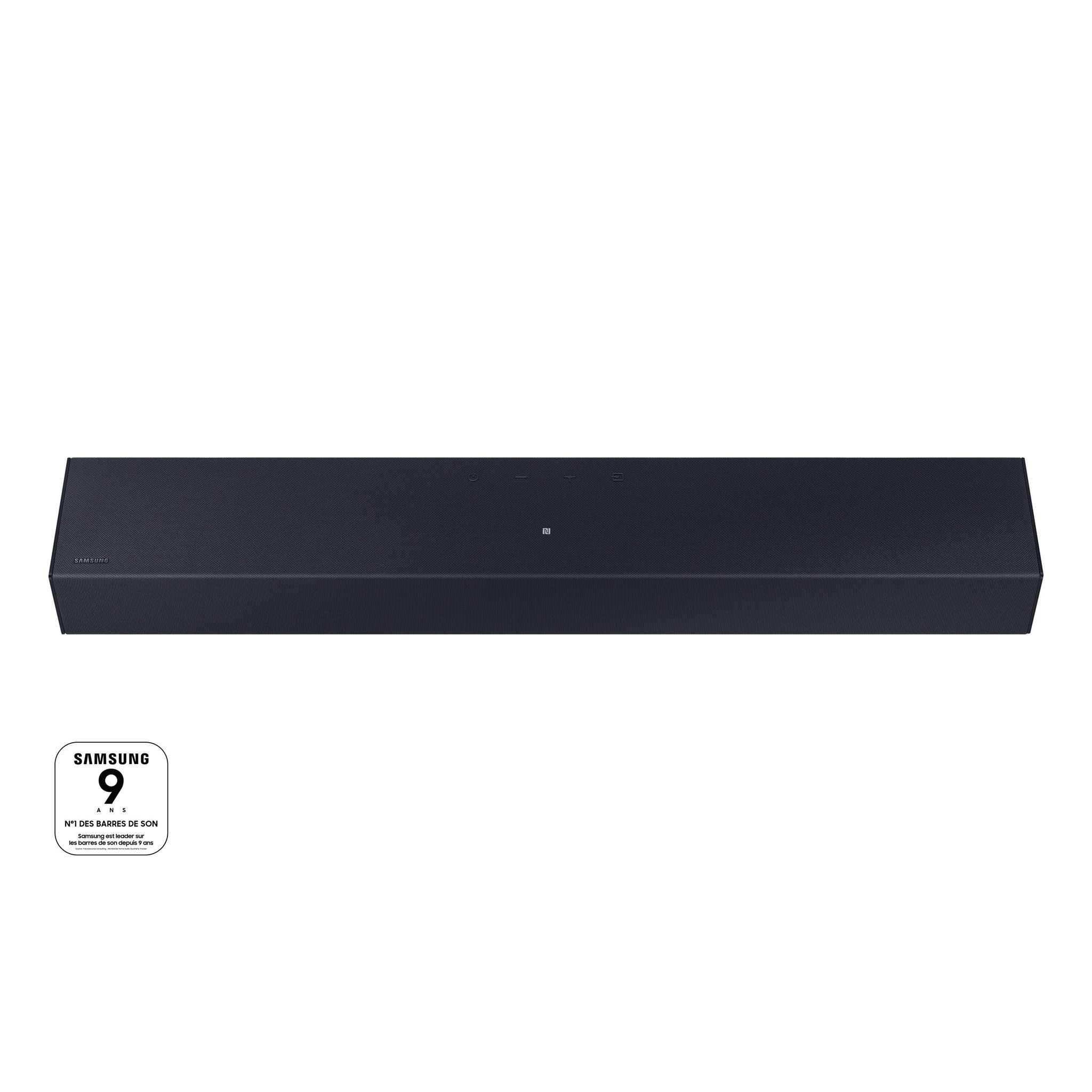Plongez dans un son plus riche et plus clair avec la barre de son SAMSUNG HW-C400. Conçue pour s'intégrer discrètement dans votre intérieur grâce à son design noir élégant, cette barre de son 2.0 canaux est l'alliée idéale pour sublimer l'audio de vos films, séries et musiques préférées.