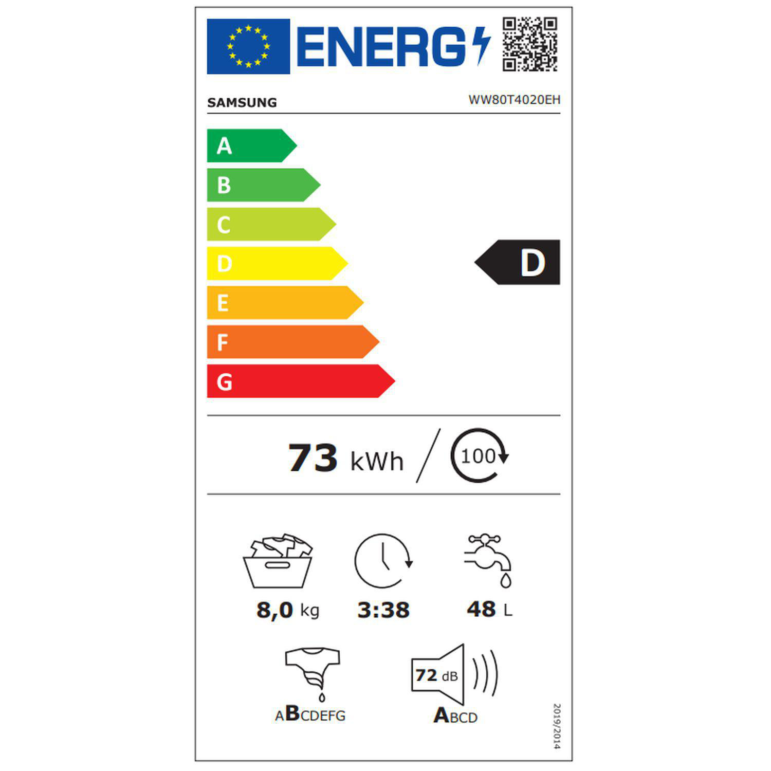 Lave linge hublot WW80T4020EH, 8 kg, 1200 T/min, D
