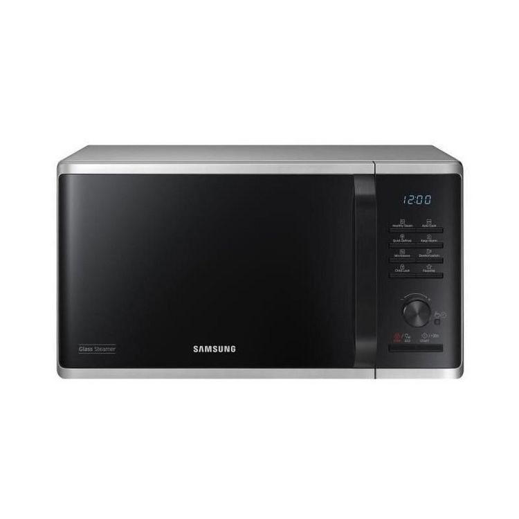 Avec son panneau de contrôle en verre tactile et son affichage LED blanc, ce micro-ondes Samsung s'intègre harmonieusement dans toutes les cuisines. La poignée noire contrastante et la finition silver apportent une touche moderne à votre espace culinaire.