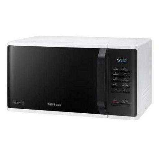 Samsung MS23K3513AW Micro-ondes solo SAMSUNG MS23K3513AW.Fonctions AutoCook, Favoris, Désodorisation et Quick Defrost : Gagnez du temps en profitant des 5 programmes de décongélation ultra rapide (décongèle 500 g de viande hachée en 2 minutes 30).Cavité en céramique émail : elle offre non seulement de meilleures performances de cuisson mais aussi une excellente résistance à l'usure et à l'abrasion, tout en facilitant le nettoyage.Design incurvé et affichage LED bleues pour une esthétique moderne.Sécurité enfants.