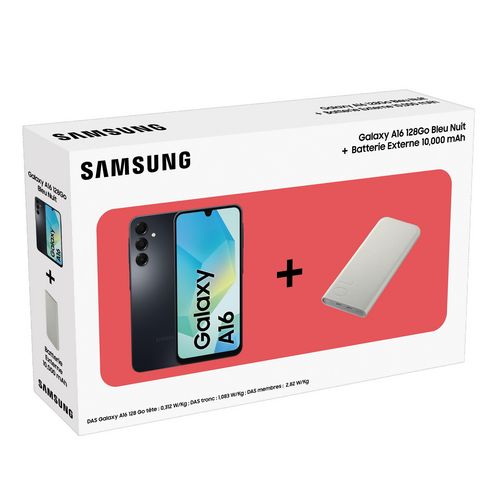Pack Galaxy A16 4G 128Go - Noir + Batterie Externe 10000 mAh