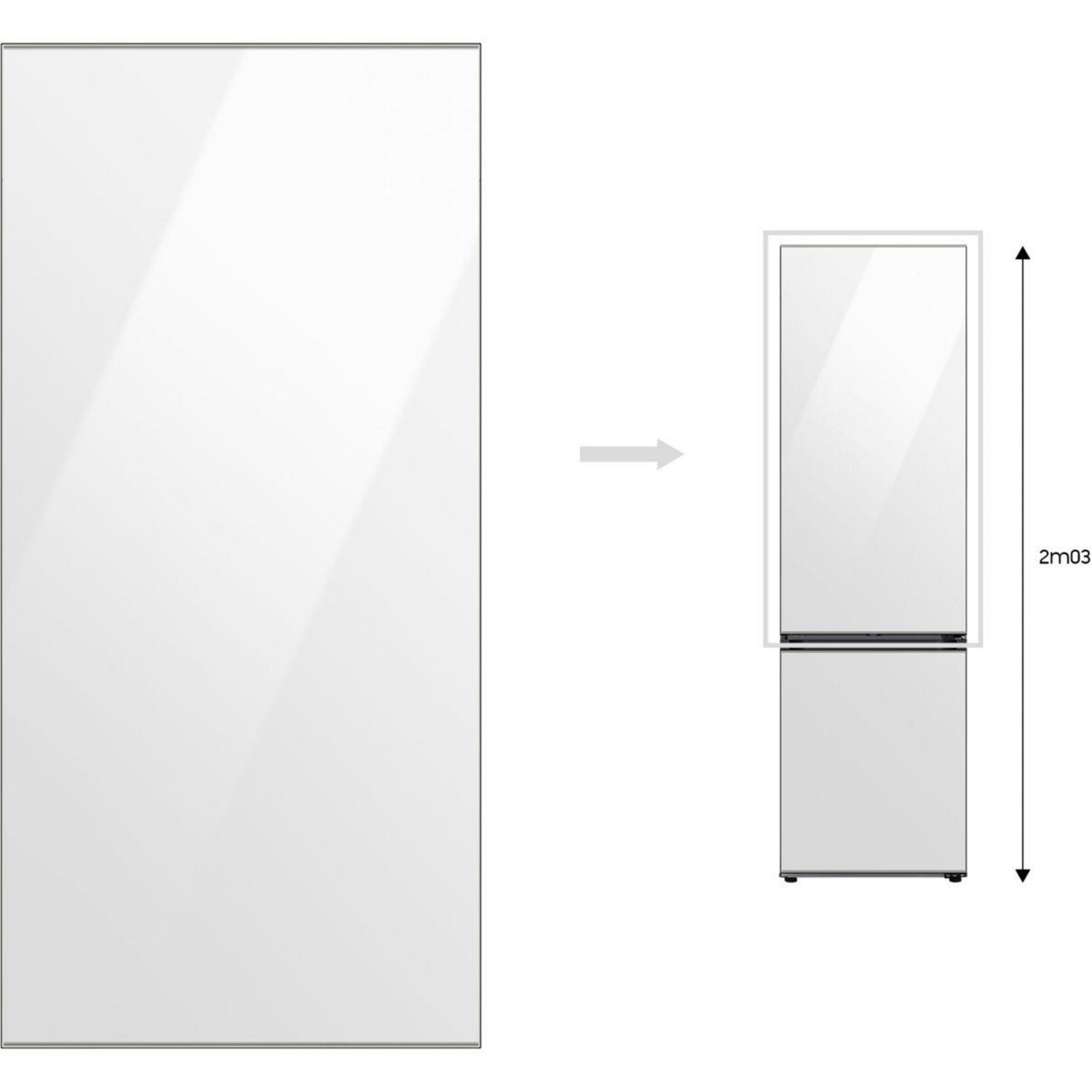 | A quoi ça sert ? | Panneau BESPOKE combiné 203cm, coloris Clean White, vous permet de changer l'habillage de votre Réfrigérateur combiné BESPOKE 203cm des gammes RB38A et RB3EA | |