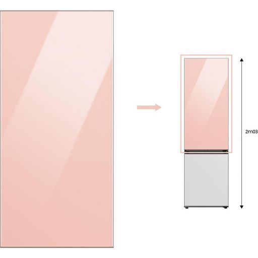 | A quoi ça sert ? | Panneau BESPOKE combiné 203cm, coloris Clean Peach , vous permet de changer l'habillage de votre Réfrigérateur combiné BESPOKE 203cm de la gamme RB38A et RB3EA | |