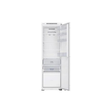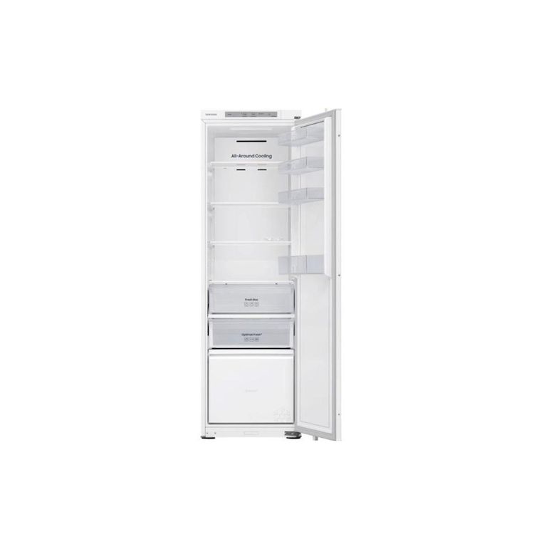 En savoir +Samsung BRD27600EWW Profitez d'un réfrigérateur spacieux et performant avec le Samsung BRD27600EWW. Sa capacité nette totale de 270L, dont 239L pour le réfrigérateur et 31L pour le congélateur, vous permet de stocker vos aliments facilement tout en optimisant l'espace . Le système de froid ventilé intégral assure une température homogène et empêche la formation de givre, garantissant une conservation optimale des aliments. Doté d'un compresseur Digital Inverter, il ajuste automatiquement ses 7 vitesses en fonction des besoins réels, offrant ainsi une meilleure efficacité énergétique et une plus grande durabilité, avec une garantie commerciale de 20 ans sur le compresseur. Ce modèle intégrable, avec porte réversible et fixation par glissières, s'adapte parfaitement à votre cuisine - Le contrôle tactile interne, accompagné d'un éclairage LED, facilite l'utilisation au quotidien. Profitez également de fonctionnalités pratiques comme le mode vacances, l'alarme sonore porte ouverte et la fonction congélation rapide. Un tiroir Optimal Fresh + vous permet de conserver la viande et le poisson à une température plus basse pour prolonger leur fraîcheur.