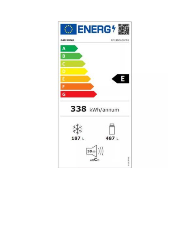 Réfrigérateur américain RF24BB620EB1EF, 674 L, Froid ventilé, E