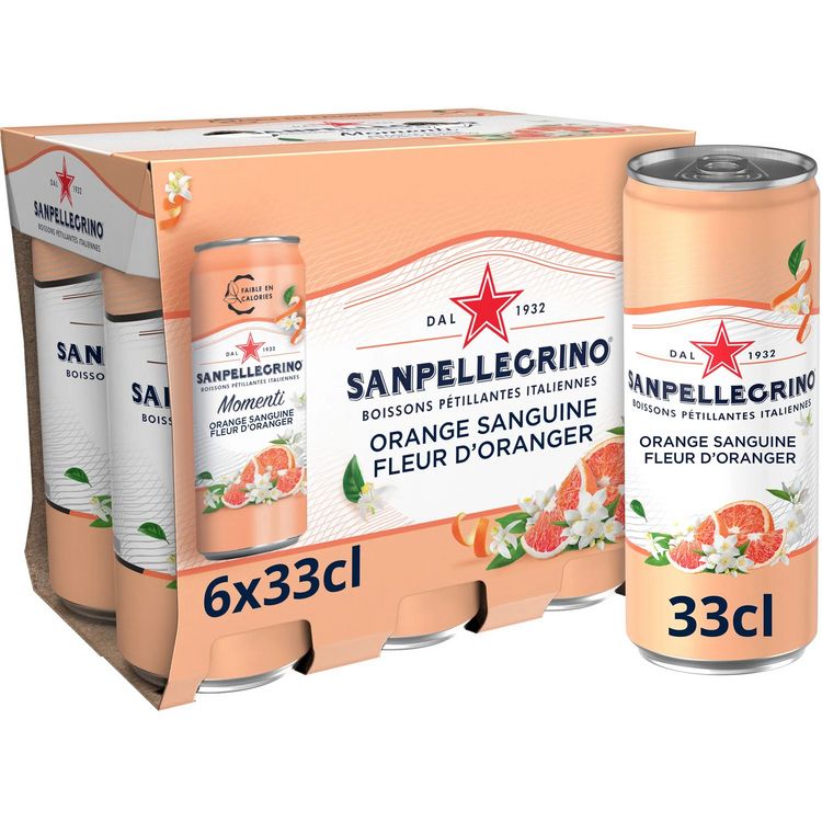 De l'eau pétillante, un duo de saveurs fruitées inédit et faible en calories ! Laissez-vous tenter par la nouvelle boisson de SANPELLEGRINO BOISSONS PETILLANTES ITALIENNES, Momenti Orange Sanguine Fleur d'oranger. Une boisson pétillante qui embaume l'extrait de fleur d'oranger. Une saveur qui s'accordent parfaitement avec la personnalité à la fois douce et énergique de l'orange sanguine. On succombe à cette boisson légère et rafraichissante qui fait pétiller le quotidien.Seulement 33 Kcal par canette, et une combinaison de saveurs surprenantes, Momenti Orange sanguine Fleur d'oranger vous accompagnera tout au long de la journée pour une pause savoureuse en toute légèreté ! Envie d'un rafraichissement ! Essayez les autres saveurs étonnantes et délicieuses de Momenti : Clémentine et Pêche, Grenade et Cassis, Citron Framboise.