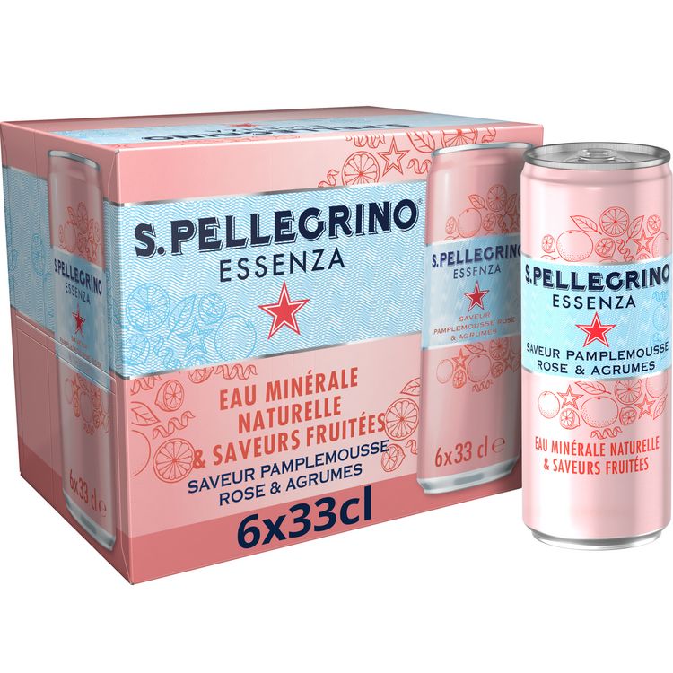 Eau gazeuse aromatisée pamplemousse rose et agrumes boîtes