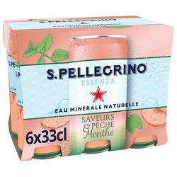 Ingrédients : Eau minéral naturel gazéifiée (99.9%), arôme naturel de pêche, arôme naturel de menthe.