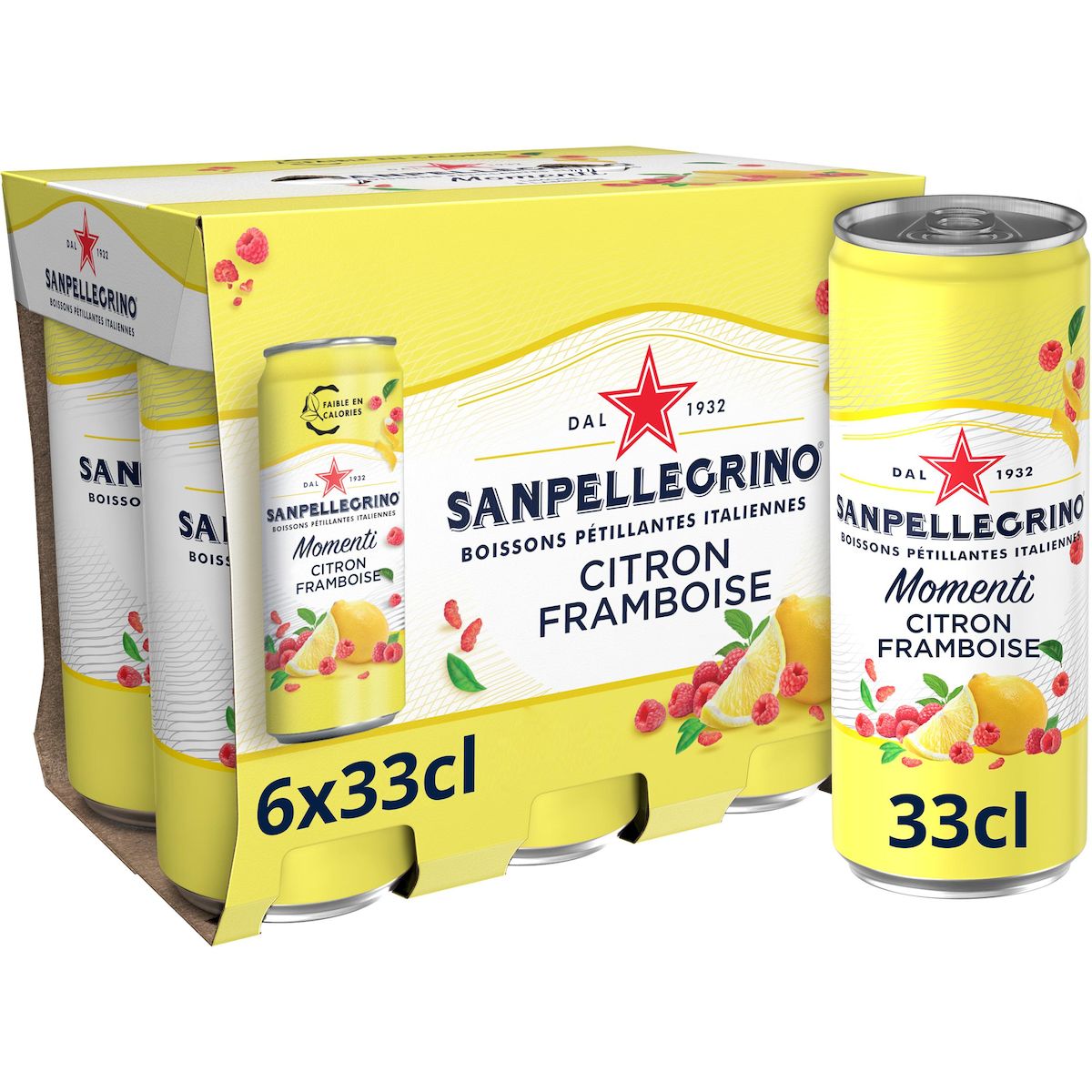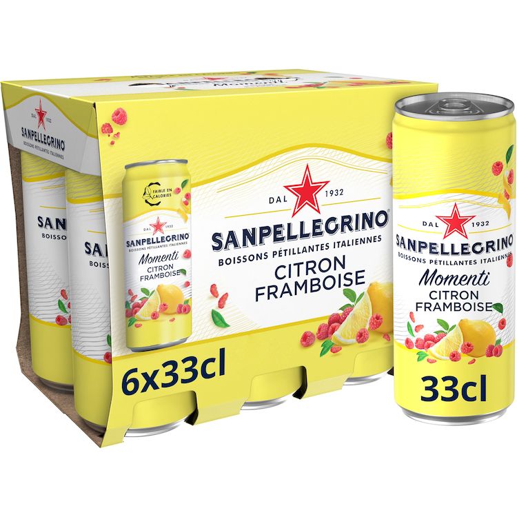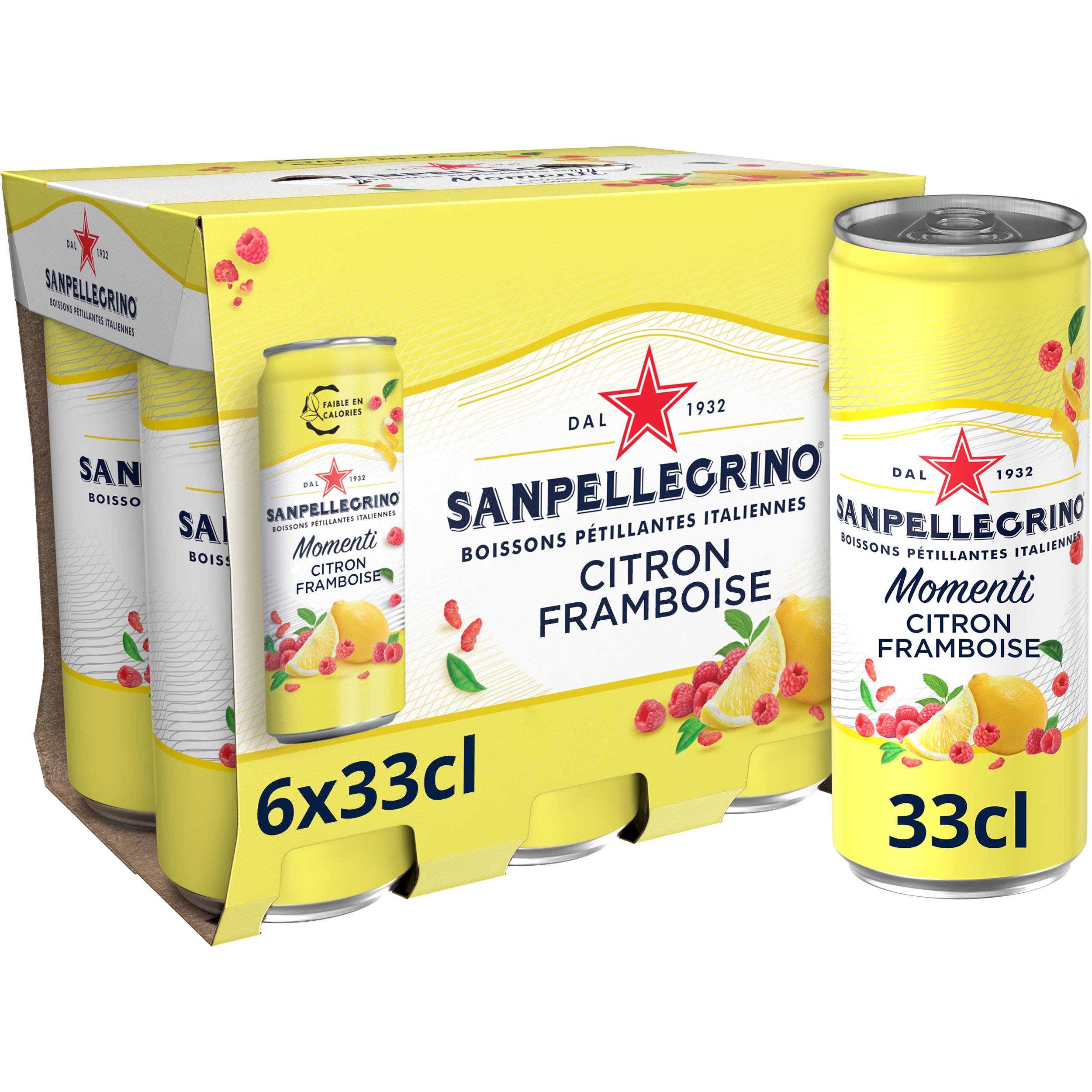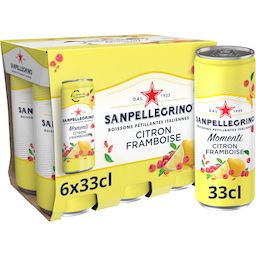 Momenti Boisson pétillante saveur citron et framboise boîtes