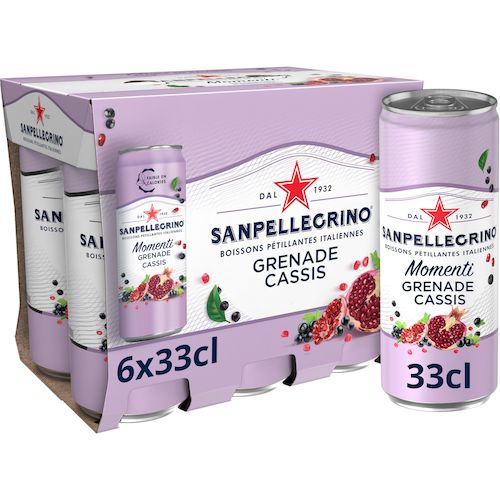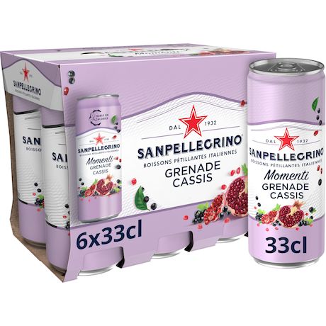 De l'eau pétillante, un duo de saveurs fruitées inédit et faible en calories ! Laissez-vous tenter par la nouvelle boisson de SANPELLEGRINO BOISSONS PETILLANTES ITALIENNES, Momenti Grenade Cassis.Un duo exquis qui mêle la fraîcheur de la saveur grenade à l'acidité du cassis. Un mariage hors du commun, délicat en bouche et dont la couleur d'un rouge soutenu en met aussi plein les yeux. Une recette pour un éveil parfait des sens ! Seulement 35 calories par canette, et une combinaison de saveurs surprenantes, Momenti Grenade cassis vous accompagnera tout au long de la journée pour une pause savoureuse en toute légèreté ! Envie d'un rafraichissement ! Essayez les autres saveurs étonnantes et délicieuses de Momenti : Clémentine et Pêche, Citron et Framboise.