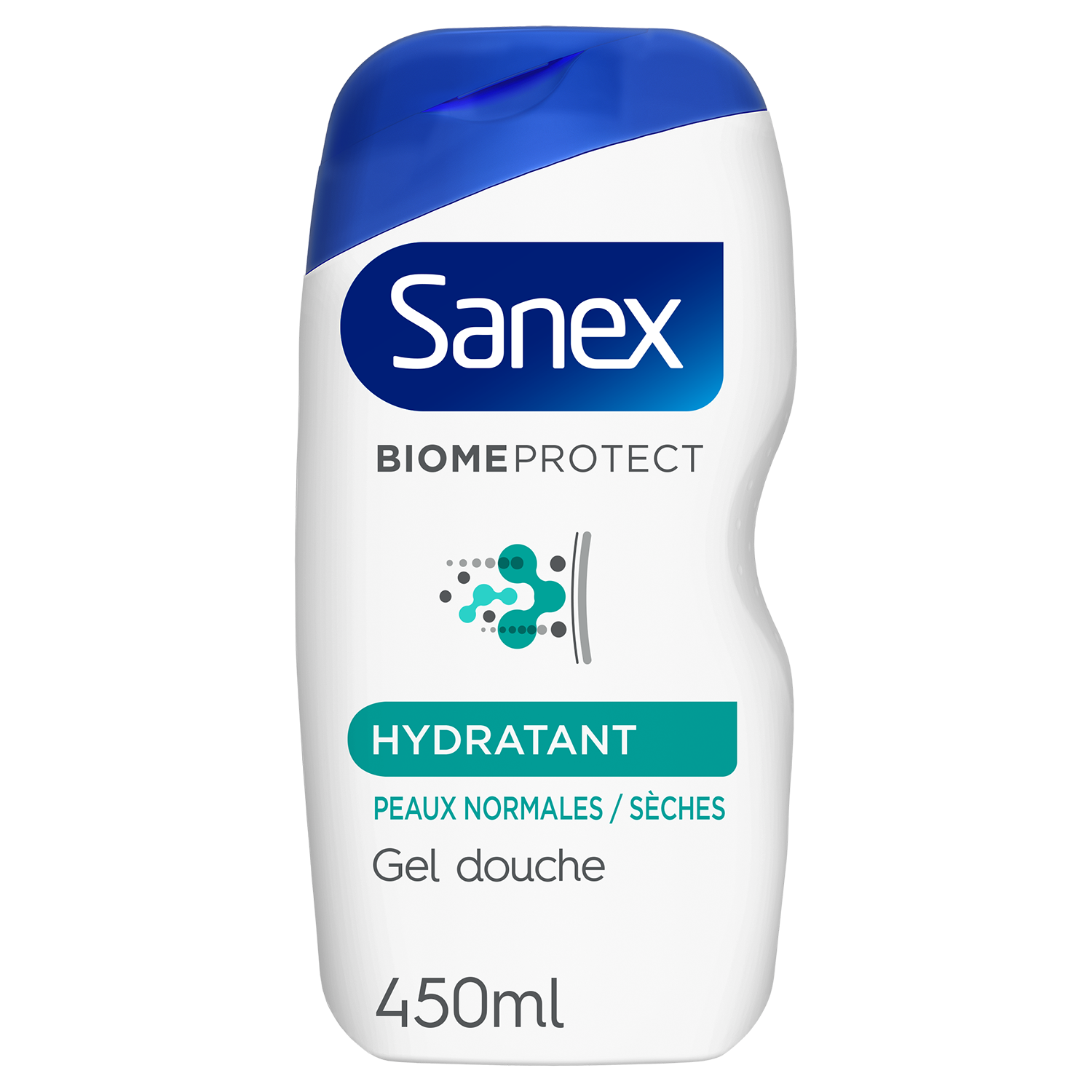 "Grâce à sa formule avancée, le gel douche Sanex Biome Protect Dermo Hydratant nettoie la peau tout en douceur et stimule ses défenses naturelles pour une peau moins sèche et moins irritée, même après la douche. Une formule au complexe exclusif prébiotique et postbiotique cible les mauvaises bactéries tout en nourrissant les bonnes pour renforcer le microbiome de la peau."