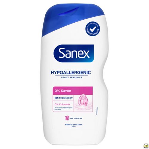 Le gel douche Sanex Hypoallergénique a été développé avec des dermatologues. Sa formule sans savon convient aux peaux sensibles de toute la famille, pour les enfants de 3 ans et plus.