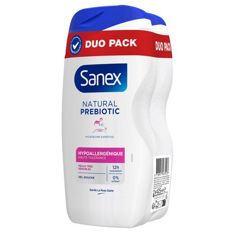Le gel douche hypoallergénique Sanex Natural Prebiotic est conçu pour nettoyer en douceur les peaux très sensibles. Le gel douche corps peau sensible testé sous contrôle dermatologique protège la peau contre la sécheresse après la douche.
