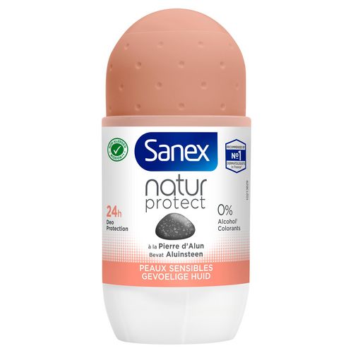 Le déodorant Sanex Natur Protect peaux sensibles pour hommes et femmes contient de la pierre d'Alun, dont les propriétés déodorantes offrent une protection efficace contre les odeurs pendant 48H. Testé dermatologiquement. Sans éthanol. 0% alcool. 0% colorants