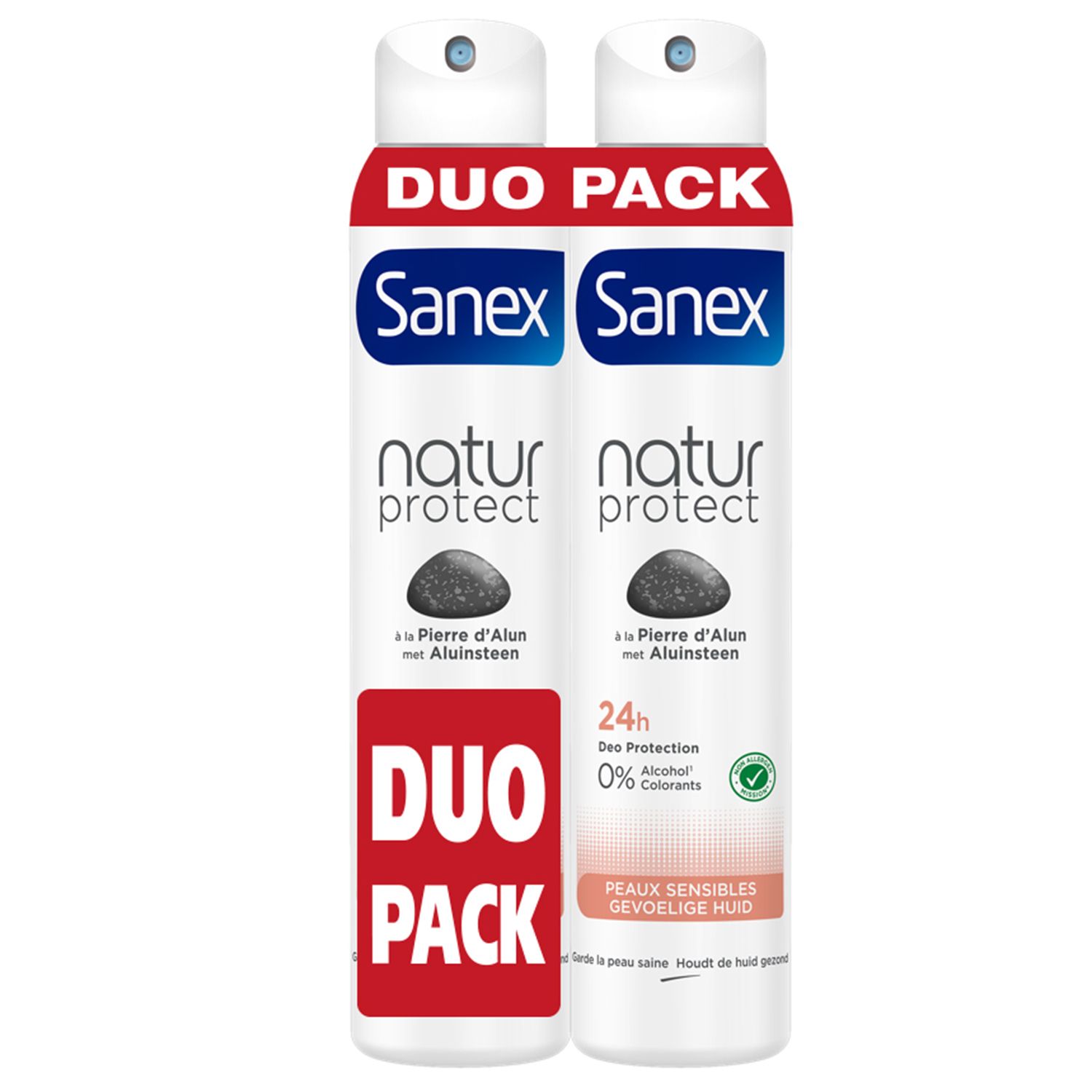 Le déodorant Sanex Natur Protect peaux sensibles pour hommes et femmes contient de la pierre d'Alun, dont les propriétés déodorantes offrent une protection efficace contre les odeurs 24 H. Testé dermatologiquement. Sans éthanol. 0% alcool. 0% colorants