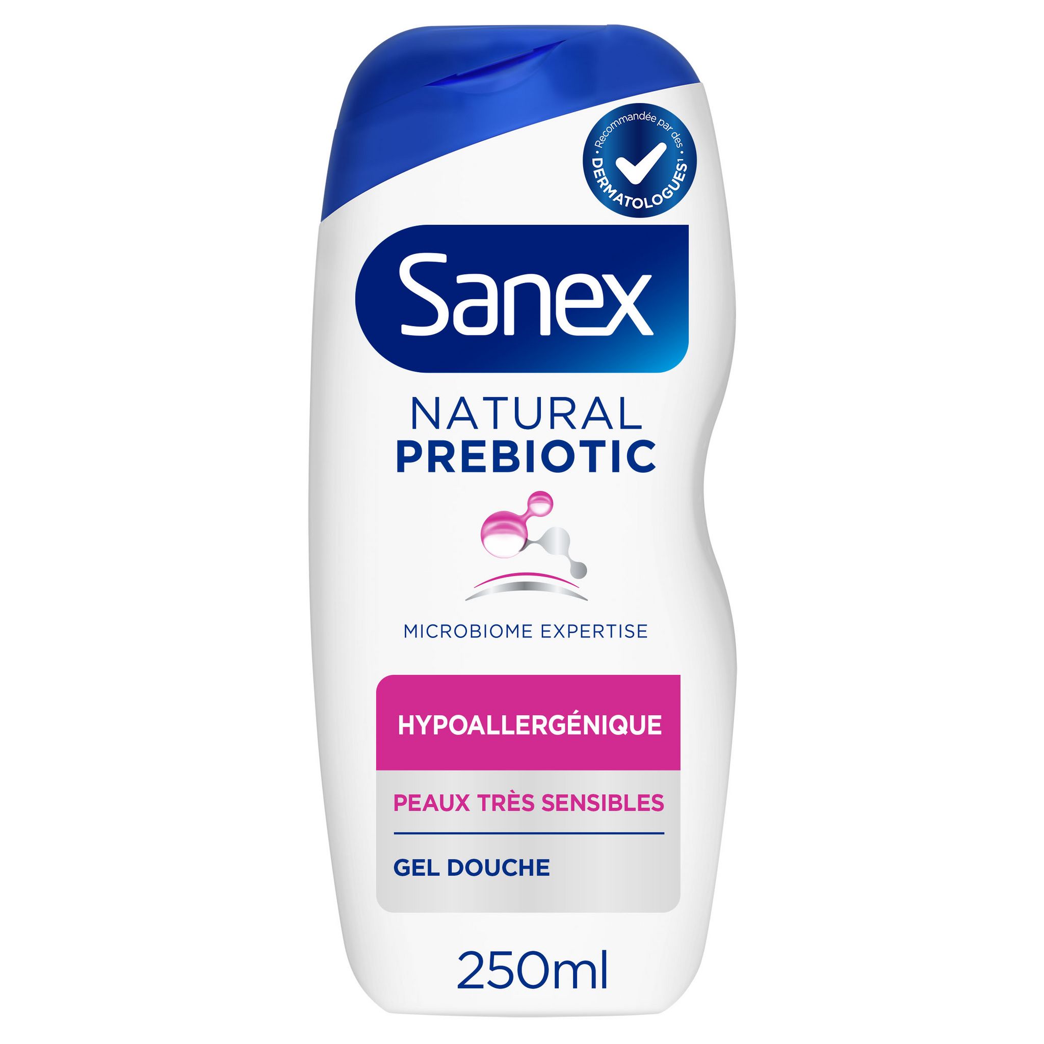Le gel douche hypoallergénique Sanex Natural Prebiotic est conçu pour nettoyer en douceur les peaux très sensibles. Le gel douche corps peau sensible testé sous contrôle dermatologique protège la peau contre la sécheresse après la douche. Sanex garde la peau saine.