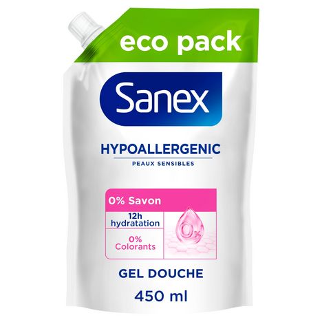 Le gel douche Sanex Hypoallergénique a été développé avec des dermatologues. Sa formule sans savon convient aux peaux sensibles de toute la famille, pour les enfants de 3 ans et plus.
