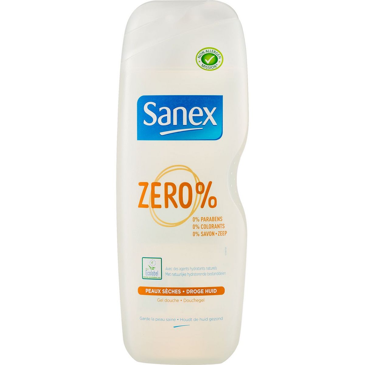 Le gel douche Sanex Zero % pour hommes et femmes contient des ingrédients sélectionnés avec soin pour garder la peau saine tout en respectant l'environnement. 0% colorants et 0% savon afin de réduire le risque de réactions allergiques. Testé dermatologiquement. SANEX ZERO% PEAUX SECHES GEL DOUCHE 750ML