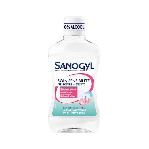 Les recherches du laboratoire Sanogyl ont développé un bain de bouche à l'allantoÏne et au potassium avec 0% d'alcool pour offrir à votre bouche une protection complète pour la sensibilité des gencives et des dents