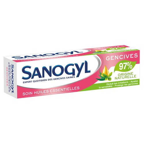 Le dentifrice SanogylSoin Huiles Essentielles naturelles Gencives contient des Huiles Essentielles naturelles de Sauge & Eucalyptus aux vertus thérapeutiques antibactériennes qui aident à garder les gencives saines et les dents fortes.