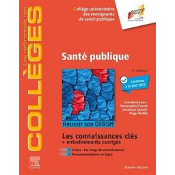 En parfaite cohérence avec le programme de DFASM et les EDN et en conformité avec la R2C 2021 cet ouvrage rassemble les connaissances fondamentales en santé publique. Il présente dans le détail les items du programme relevant de cette spécialité avec des objectifs pédagogiques clairement définis et comporte deux parties : Une partie Connaissances divisée en chapitres consacrés chacun à un item. Chaque chapitre commence systématiquement par la liste des situations de départ concernées un tableau qui expose les rangs de connaissances et les objectifs pédagogiques puis développe la thématique. Le contenu clair et didactique est étayé par de nombreux tableaux et des points clés sur des notions à retenir. Une partie Entraînement qui propose 7 dossiers progressifs 4 cas cliniques avec commentaires aux réponses 178 questions isolées corrigées et commentées offrant un véritable outil d'autoévaluation. Cette 5e édition propose une mise à jour complète des contenus des données et des recommandations existantes ainsi que trois nouveaux items : télémédecine télésanté et téléservices en santé , Santé et numérique , Impact de l'environnement sur la santé.