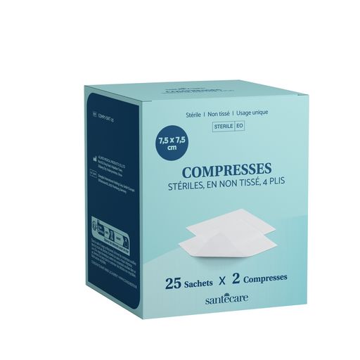 Compresse Stérile en non tissé - 7,5x7,5cm - 25x2