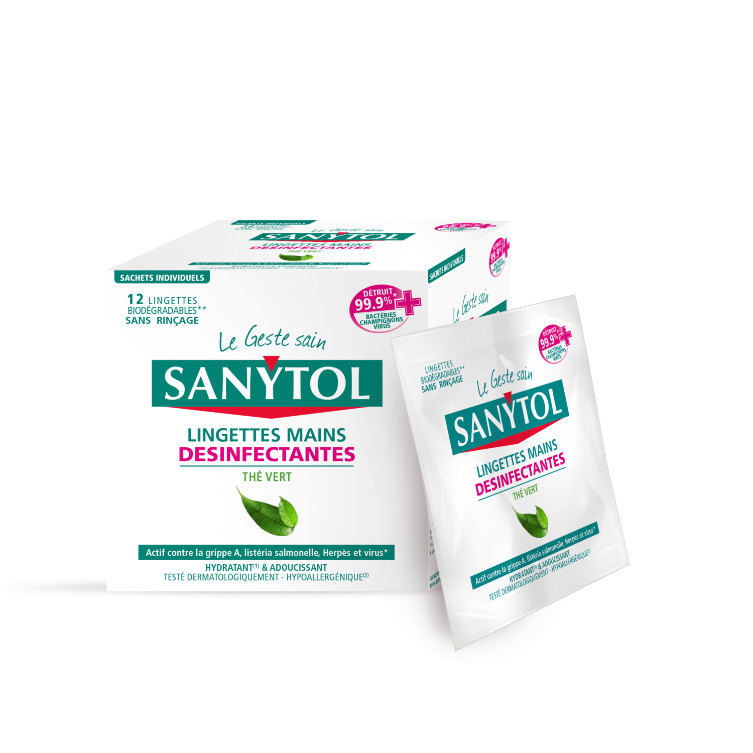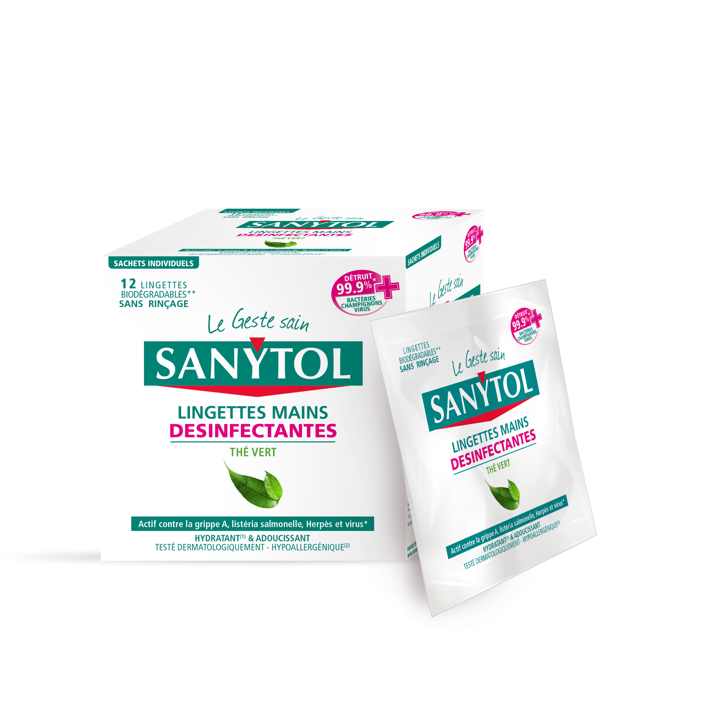 Les lingettes mains désinfectantes SANYTOL nettoient et éliminent 99.9% des bactéries, virus et champignons (dont le virus de la grippe A).