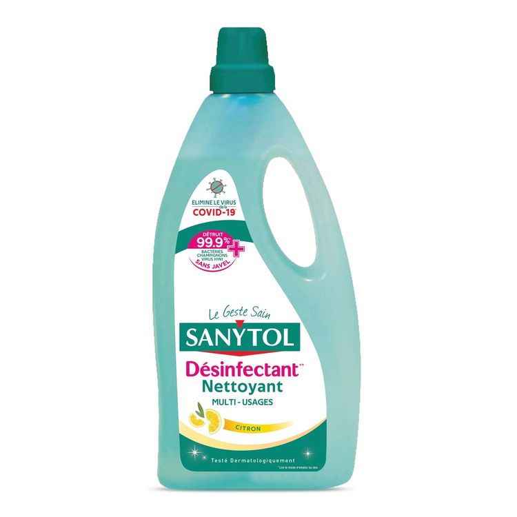 Le Nettoyant Sols & Surfaces Sanytol nettoie, désinfecte et fait briller toutes vos surfaces lavables en un seul geste. Idéal pour nettoyer les sols, la salle de bain, la cuisine, les WC… Sans javel, il laisse un parfum frais et durable de citron & feuilles d’olivier.