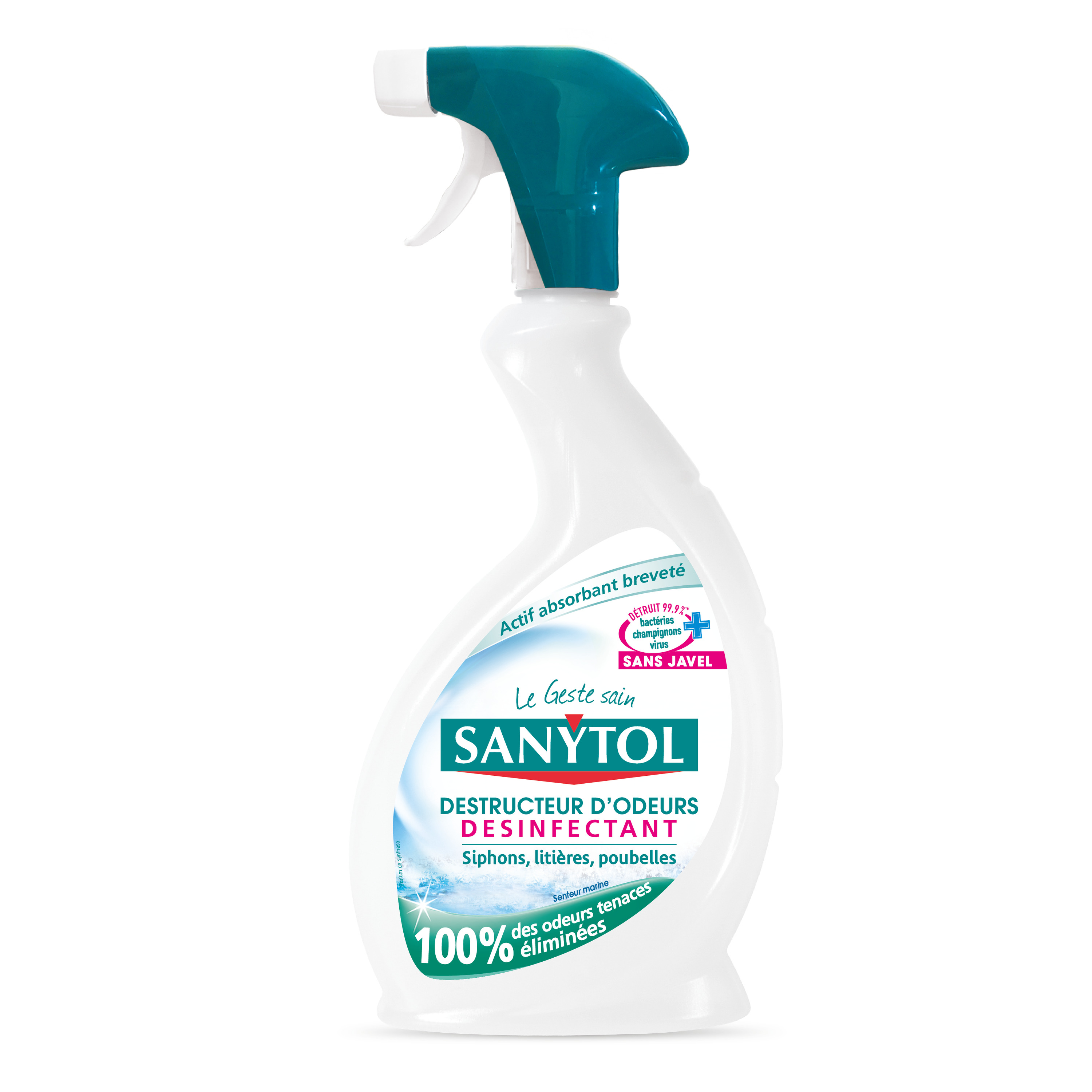 Spray désinfectant destructeur d'odeurs sans javel senteur marine
