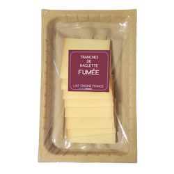 Tranches de raclette fumée au bois de hêtre 150g - emballage plus écologique (mois de plastique)