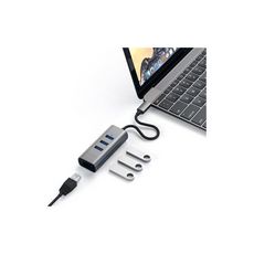 Adaptateur Satechi USB C avec port Ethernet RJ45 + 3 ports USB Gris Sidéral