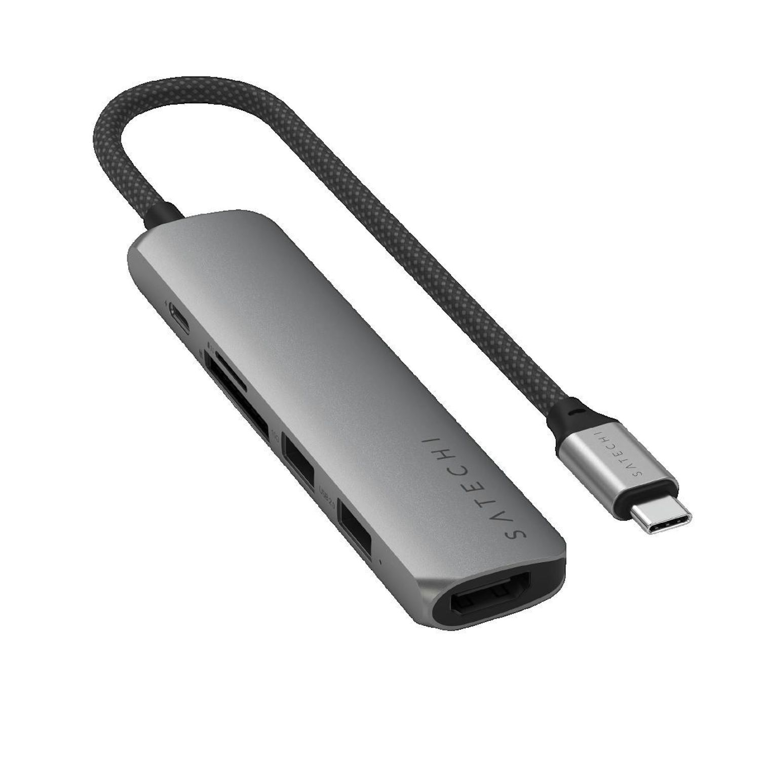 Hub USB-C Satechi Slim Multiport 6-en-1 Gris Sidéral