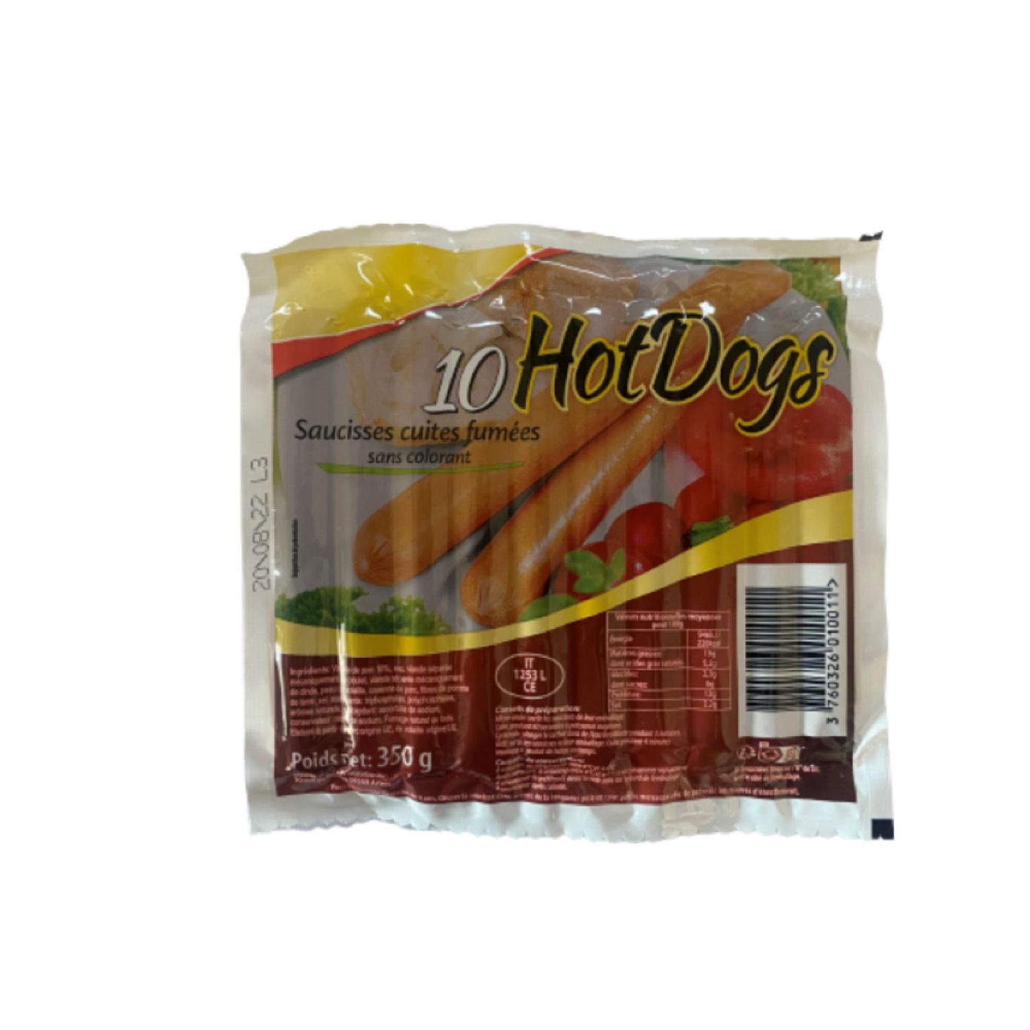 10 saucisses hot dog fumées 350 g