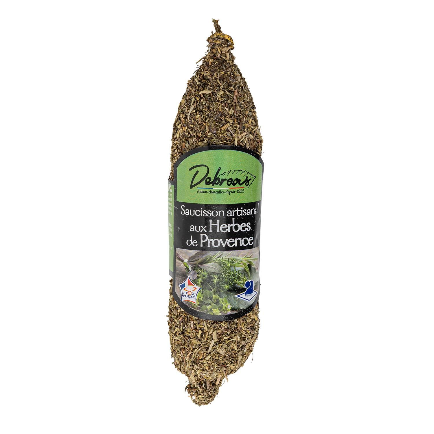 viande de porc, sel, LACTOSE, dextrose, épices et plantes arômatiques, nitrate de potassium, FERMENTS LACTIQUES, boyau naturel de porc, colle alimentaire, herbes de Provence.