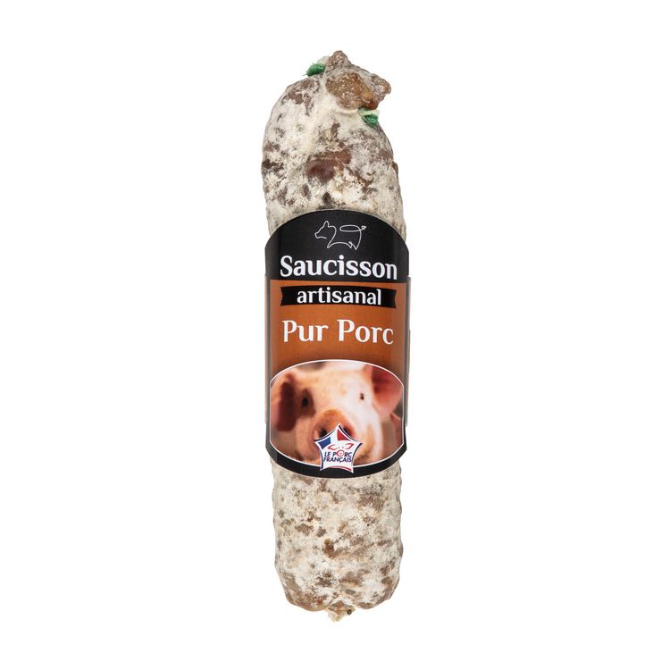 viande de porc, sel, LACTOSE, vin, dextrose, épices et plantes aromatiques, nitrate de potassium, FERMENTS LACTIQUES, boyau naturel de porc.