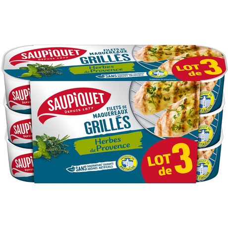 Filets de MAQUEREAUX** (85%), huile de tournesol, herbes de Provence (0,4%), sel, arôme naturel d'herbes de Provence.**Scomber scombrus