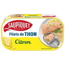 Filets de THON listao* (65%), eau, huile de tournesol, vinaigre, zestes de citron (3%), arôme naturel de citron, sel, sucre, arômes naturels, amidon, persil, épaississants : gomme guar et gomme xanthane. *Euthynnus (katsuwonus) pelamis