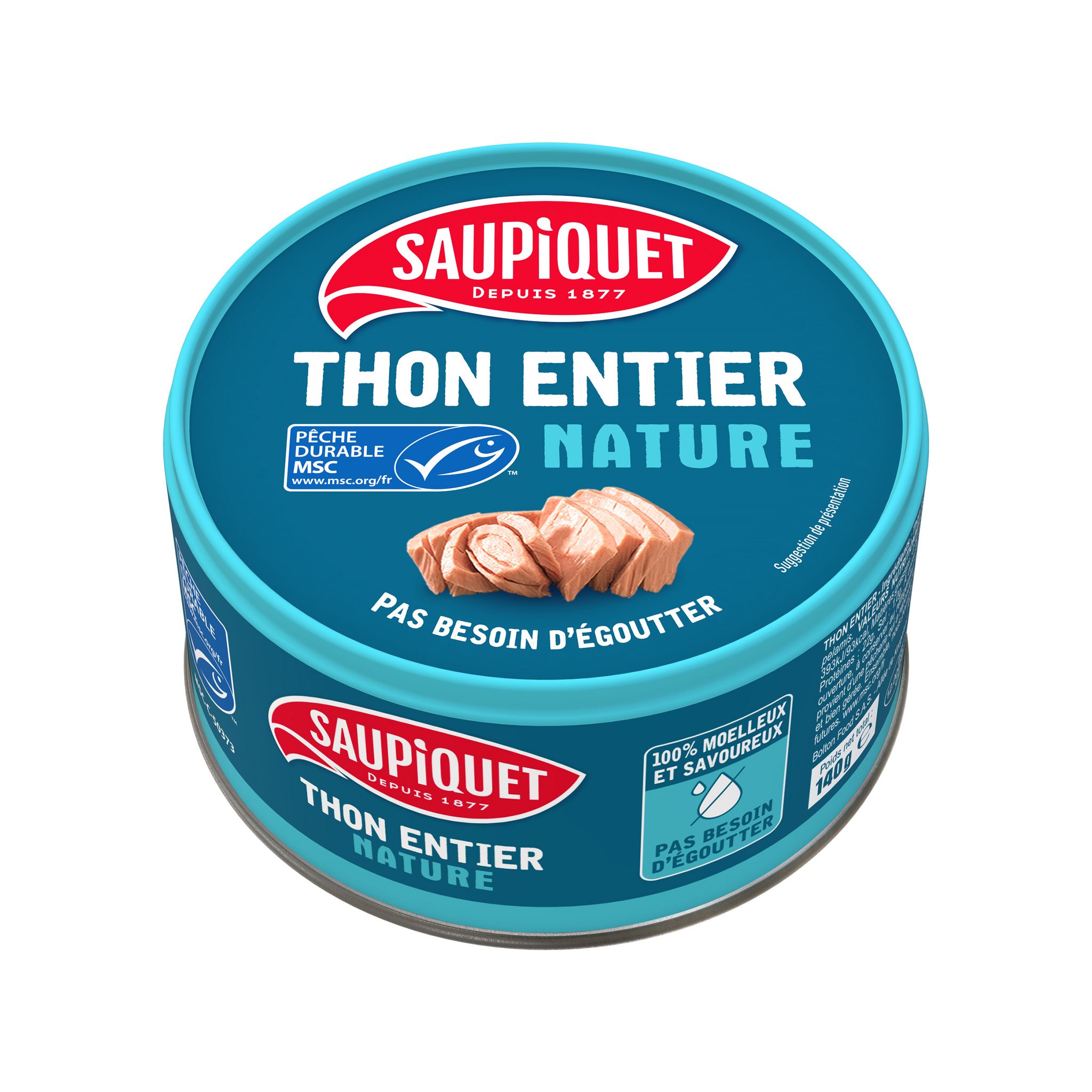 Si notre Thon Entier Nature est si bon, c'est parce que nous y avons ajouté notre touche. Il est issu d’une pêche durable, certifiée MSC, et contient juste ce qu’il faut d’eau pour le rendre si bon et si moelleux, sans avoir besoin de l’égoutter !