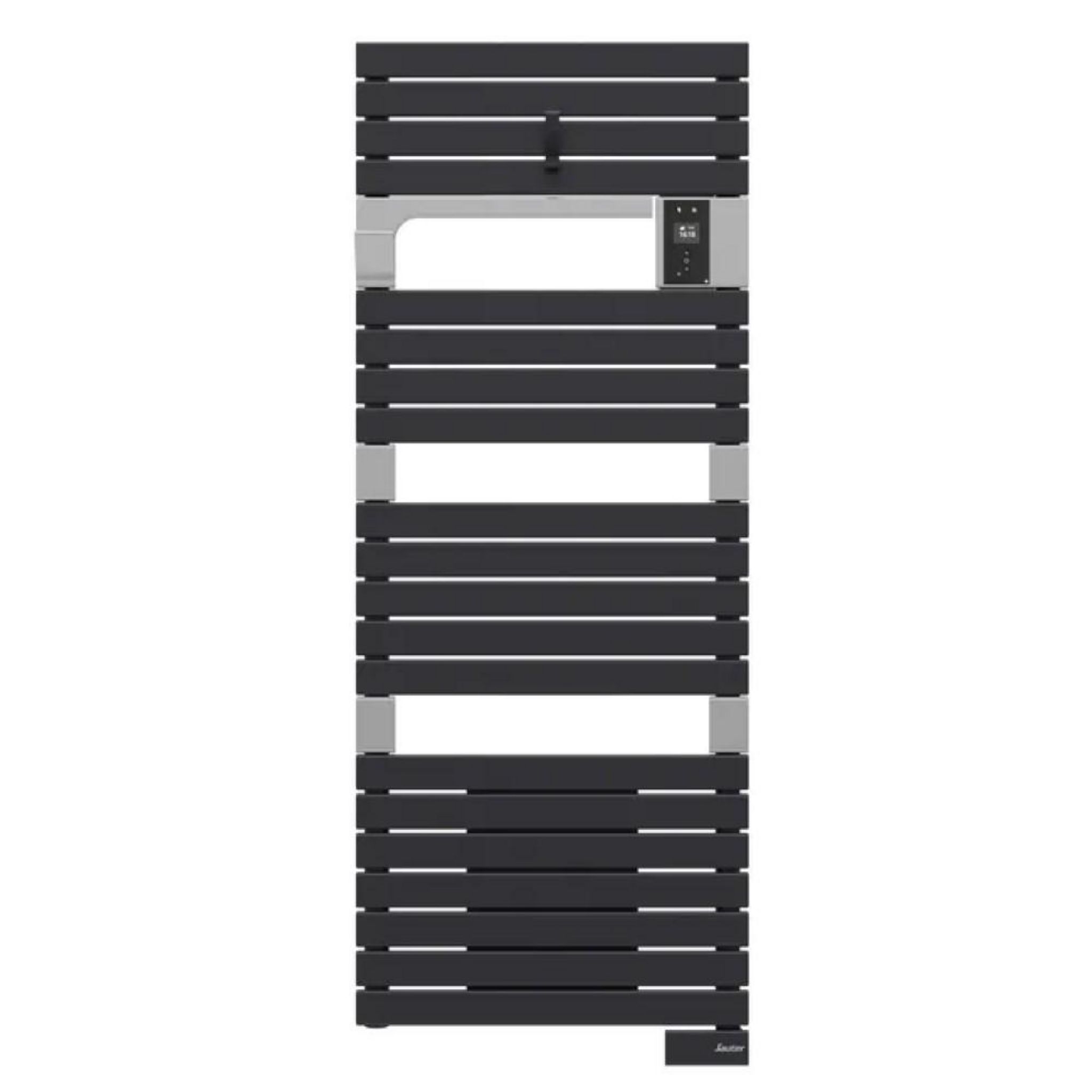 Avec son design lames plates, il vous offre une surface de séchage plus importante. Il bénéficie également d&rsquo,une barre pivotante, d'une patère fixe et d'une patère amovible pour suspendre encore plus de serviettes, ainsi que d&rsquo,un boÎtier digital tactile intégré et facile d&rsquo,accès avec affichage de l&rsquo,heure et, météo.
