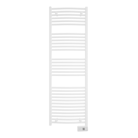 Un radiateur sèche-serviettes fluide galbé programmable (programmation libre hebdomadaire). Il s'adapte aux imprévus grâce à la fonction boost en accès direct pour une salle de bains chaude rapidement. Ce sèche- serviettes est pratique : un boîtier digital avec touches tactiles affiche l'heure et l'estimation de la consommation électrique. 2 patères pour accrocher peignoirs et serviettes sont fournies. Sèche- serviettes compact : largeur 50 cm. Installation facilitée grâce au gabarit de pose inclus dans l'emballage